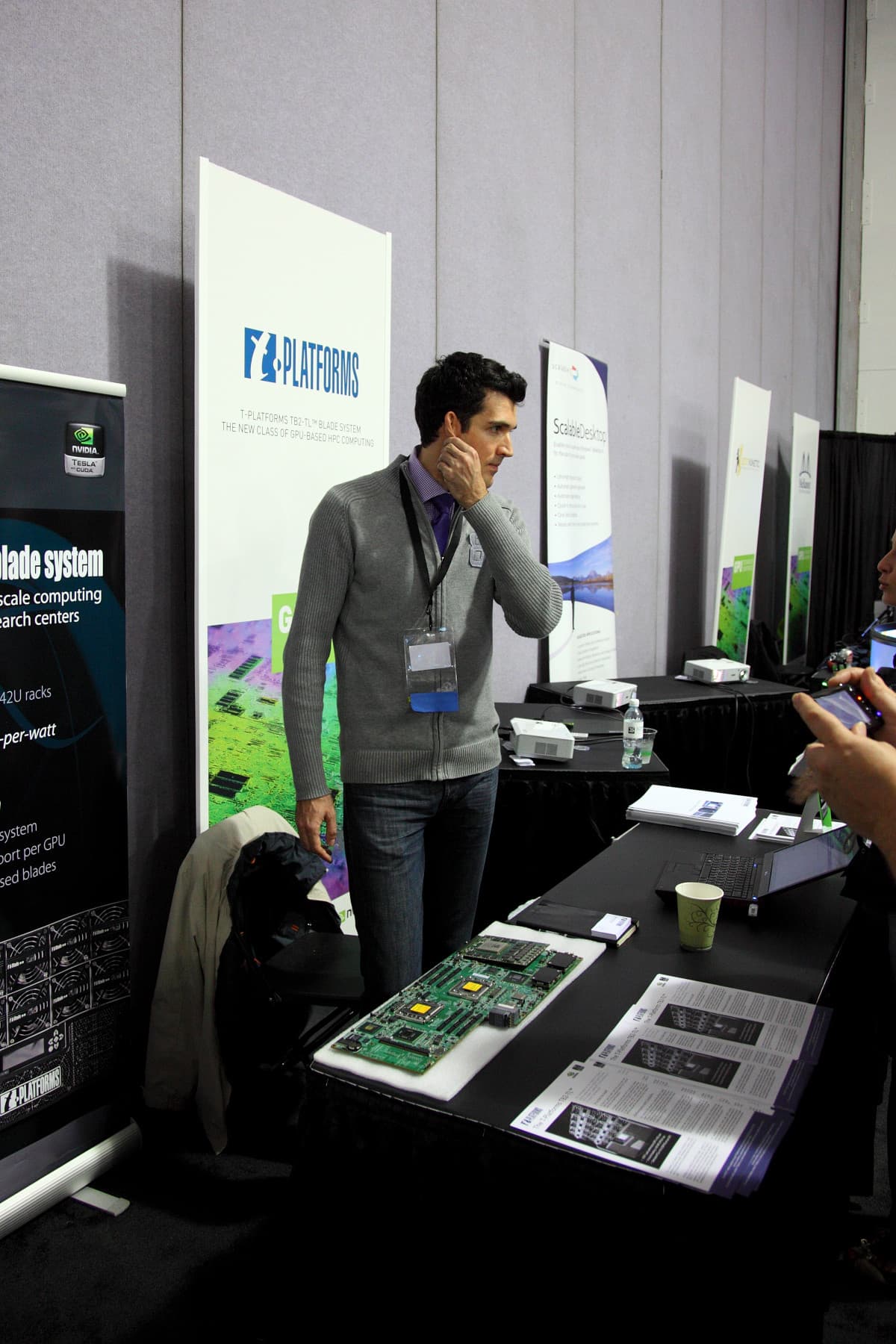 На стенде российского суперкомпьютерного холдинга была показана гибридная вычислительная система TB2-TL, которая обеспечивает наиболее высокую вычислительную плотность и энергоэффективность среди всех существующих вычислительных систем. Использование графических процессоров Nvidia Tesla X2070 в блейд-системе T-Blade2 позволяет достичь производительности в 1 петафлопс при использовании 10-ти стандартных стоек и поэтому обеспечивается лучшее соотношение производительности к энергопотреблению в 1450 мегафлопс/Вт.