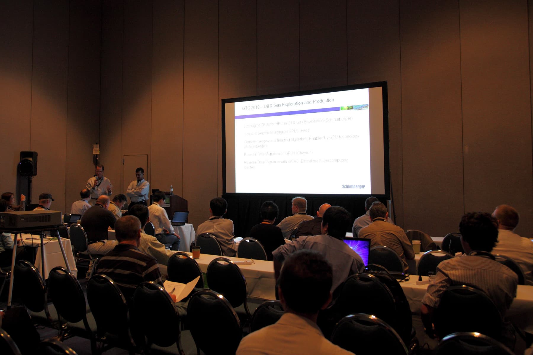Следующие две сессии, о которых я хочу рассказать, были посвящены самым интересным использованиям GPU. Сначала рассмотрим презентацию очень известной компании Schlumberger. Она является мировым лидером, предоставляющим предприятиям нефтяной и газовой промышленности современные технологии нефтедобычи и информационные решения.