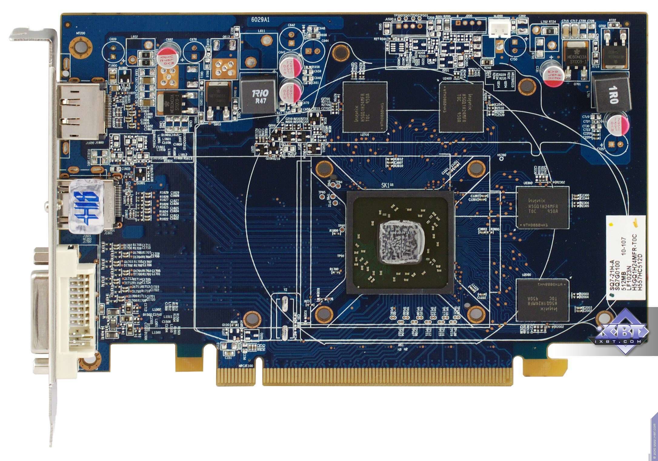 | Карта имеет 512 МБ памяти GDDR5 SDRAM, размещенной в восьми микросхемах (по четыре на каждой cторонe PCB) Микросхемы памяти Hynix (GDDR5). Микросхемы раcсчитаны на максимальную частоту работы в 1000 (4000) МГц. | ![]() |