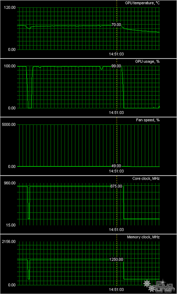 Мы провели исследование температурного режима с помощью утилиты MSI (автор А. Николайчук AKA Unwinder) и получили следующие результаты: