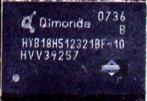 | Карта имеет 512 МБ памяти GDDR3 SDRAM, размещенной в 8 микросхемах на лицевой стороне PCB Микросхемы памяти Qimonda (GDDR3). Микросхемы рассчитаны на максимальную частоту работы в 1000 (2000) МГц. | ![]() |
