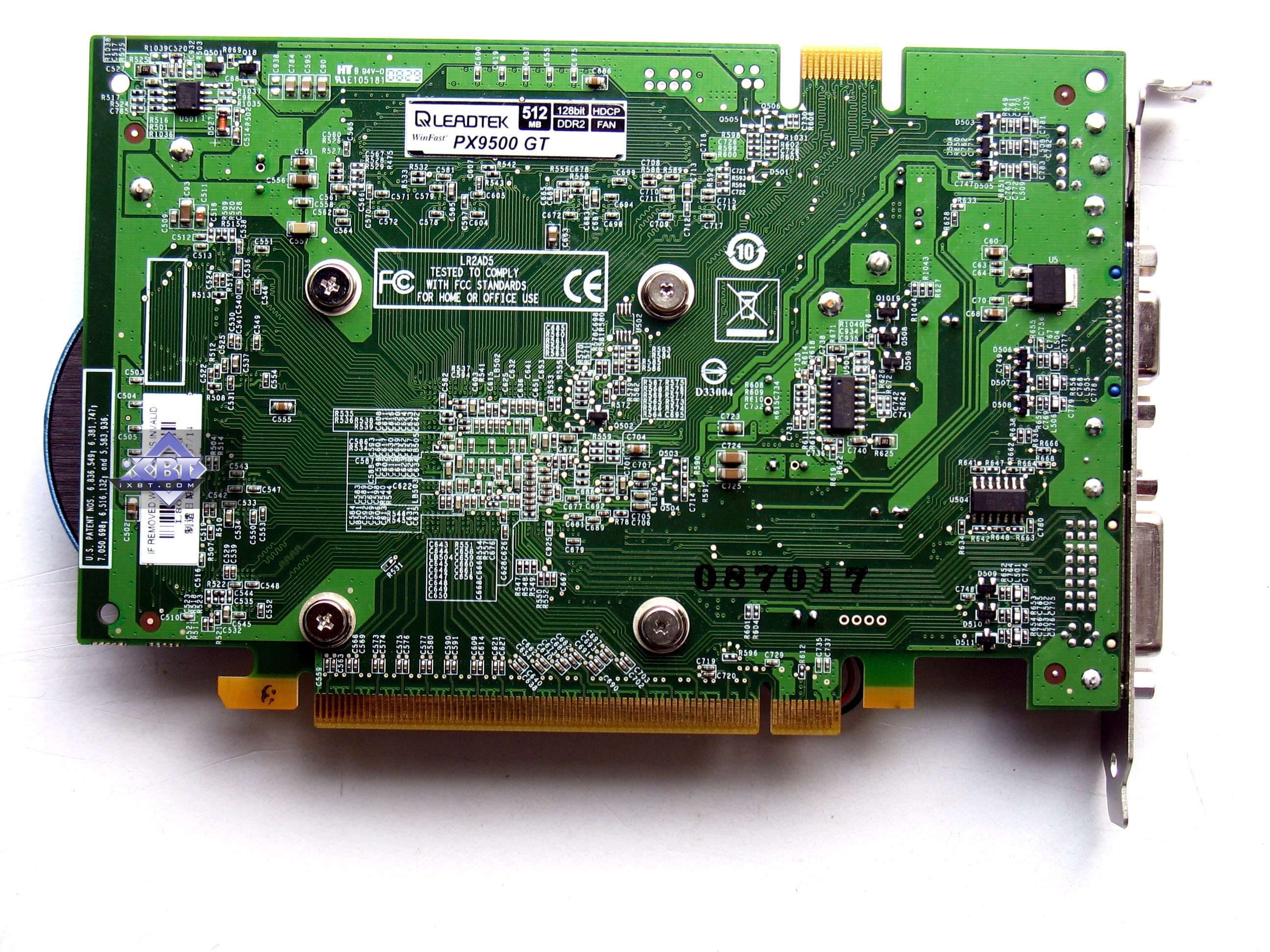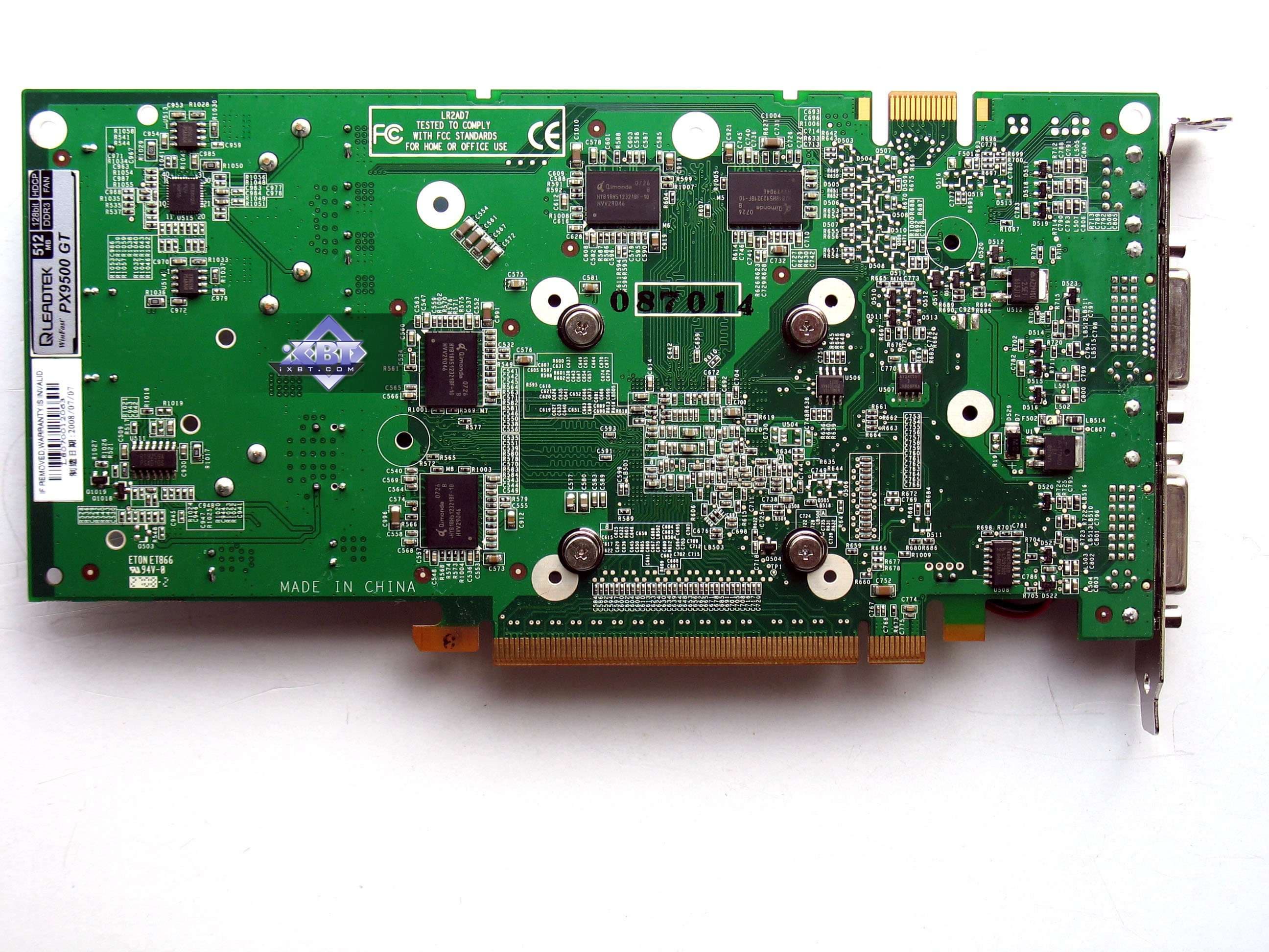 Leadtek WinFast PX9500GT 512MB GDDR3 PCI-E — а это уже стандартный 9500 GT со всеми его достинствами и недостатками, о чем я писал ранее. Стоит еще раз отметить странность дизайна с увеличением размера PCB, однако пользователей это не касается. Главное, чтобы цена соответствовала. А качество у карты, как и в предыдущем случае, очень высоко.