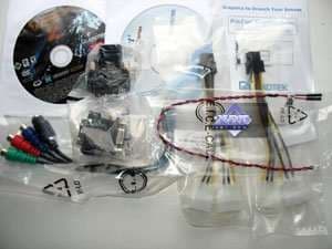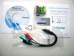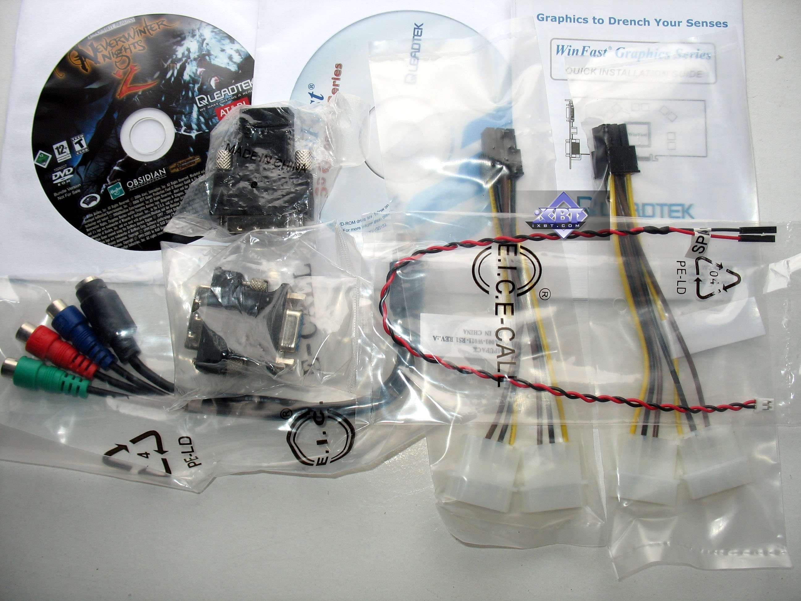 Базовый комплект поставки должен включать в себя: руководство пользователя, диск с драйверами и утилитами, переходник-адаптер DVI-to-VGA, DVI-to-HMDI адаптер, адаптер компонентного вывода (TV-out), а также разветвители внешнего питания и аудио-шнурок для соединения со звуковой картой (для передачи звука по HDMI) (кроме 9500GT-карт). Ниже мы покажем, что предлагается к каждой карте дополнительно.