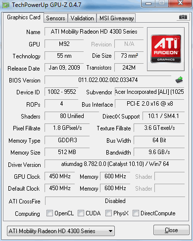 А вот сравнимым с Zacate по мощности видеоядра наверняка должен быть Acer Aspire 5538G на базе платформы AMD предыдущего поколения: AMD Athlon Neo X2 L310 с дискретной видеокартой начального уровня AMD Mobility Radeon HD 4330, имеющей столько же потоковых процессоров и работающей на схожей частоте. Интересно, что и общее энергопотребление у них схожее.
