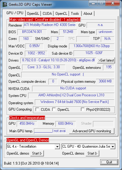 Что касается возможностей видеоядра этого APU, то производительность Radeon HD 6310 оказалась несколько выше скорости видеоядра Nvidia ION 2, имеющегося в составе системы на базе Atom. Но вот дискретному Radeon HD 4330, имеющем примерно схожие теоретические скоростные показатели, Radeon HD 6310 чаще всего, увы, немного уступал. Вероятно, это связано как с меньшей пропускной способностью видеопамяти, так и с тем, что в случае APU она ещё и делится между CPU и GPU ядрами.