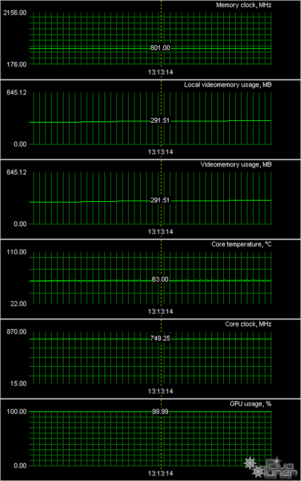 Мы провели исследование температурного режима с помощью утилиты RivaTuner (автор А.Николайчук AKA Unwinder) и получили следующие результаты: