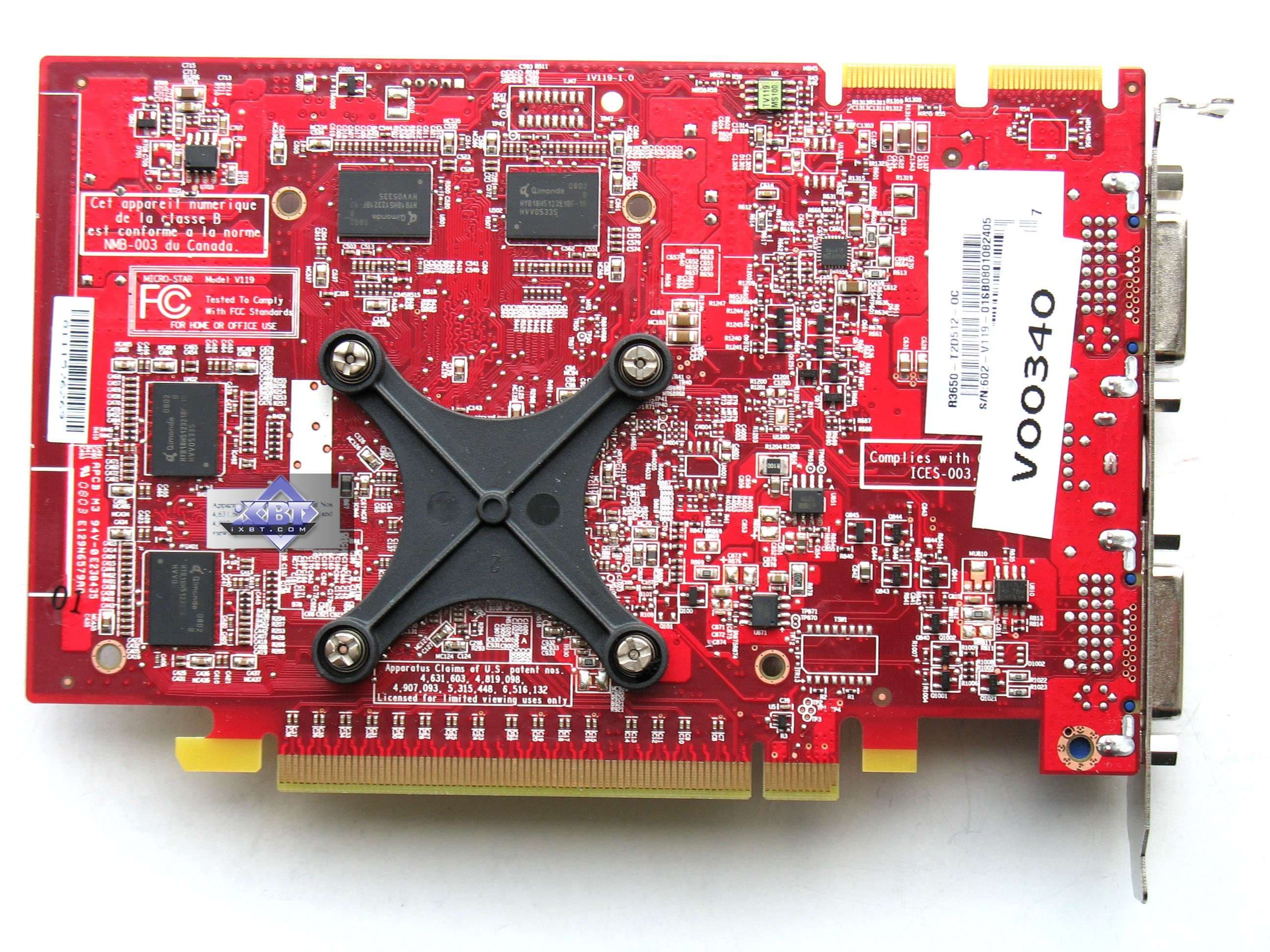 MSI RADEON HD 3650 512MB (R3650-T2D512) PCI-E — что касается конкретно представителя 3650 от MSI, то данный продукт имеет чуть более высокие частоты, нежели эталонная карта, снабжен хорошей системой охлаждения. А все остальное — стандартное и сказать больше нечего. Комплект поставки бедноват, впрочем для таких дешевых карт ждать иного и не приходится. Карта отработала стабильно, надежность на высоком уровне. Напомню, что разогналась по ядру до 900 МГц (в условиях корпуса с хорошей продувкой).