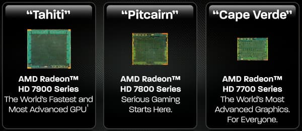 Из названия понятно, что Radeon HD 7800 более производительна, чем HD 7700, но имеет меньшую скорость, по сравнению со старшими моделями — HD 7900. Что касается сравнения с решениями Nvidia, то старшая выпущенная модель HD 7870 на момент выхода конкурирует с видеокартой Geforce GTX 570, а младшая нацелена на борьбу с GTX 560 Ti (все решения Nvidia основаны на старых GPU, 28-нанометровых чипов они всё ещё не выпустили).