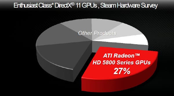 Именно указанная видеокарта стала одной из самых успешных на рынке пару лет назад. По данным на конец 2011 года, Radeon HD 5870 является одной из наиболее популярных DX11-карт с ценой от $200 — доля этой видеокарты компании AMD среди таких решений составила 27%, что довольно неплохо.