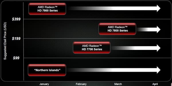Ну вот и подошло время выпуска на рынок средних по цене решений в новейшем семействе AMD Radeon HD 7000. После выхода самых первых решений новой линейки Radeon HD 7900, являющихся топовыми, через некоторое время вышли и самые дешёвые модели той же серии, основанные на чипе Cape Verde (Radeon HD 7700). И вот теперь настала очередь третьей волны, завершающей выход семейства Southern Islands на рынок — в виде двух моделей серии Radeon HD 7800. Примерно так это выглядит на временно́й диаграмме:
