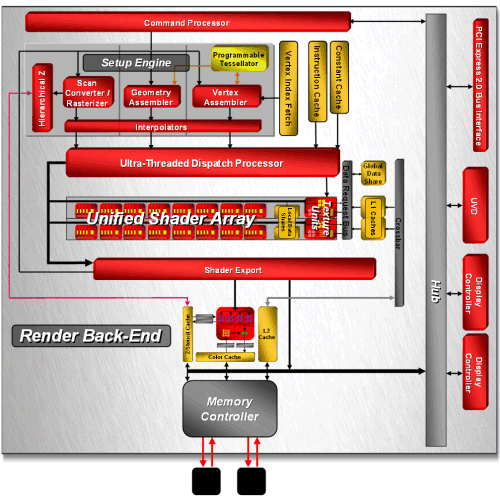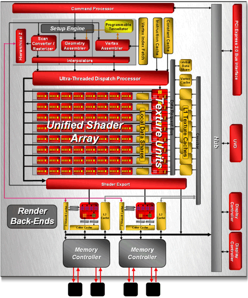 Эти материалы достаточно точно спрогнозировали текущую ситуацию с архитектурами видеочипов, оправдались многие предположения о будущих решениях. Подробную информацию об унифицированных архитектурах AMD R6xx, RV6xx и RV7xx на примере предыдущих решений, можно найти в следующих статьях: