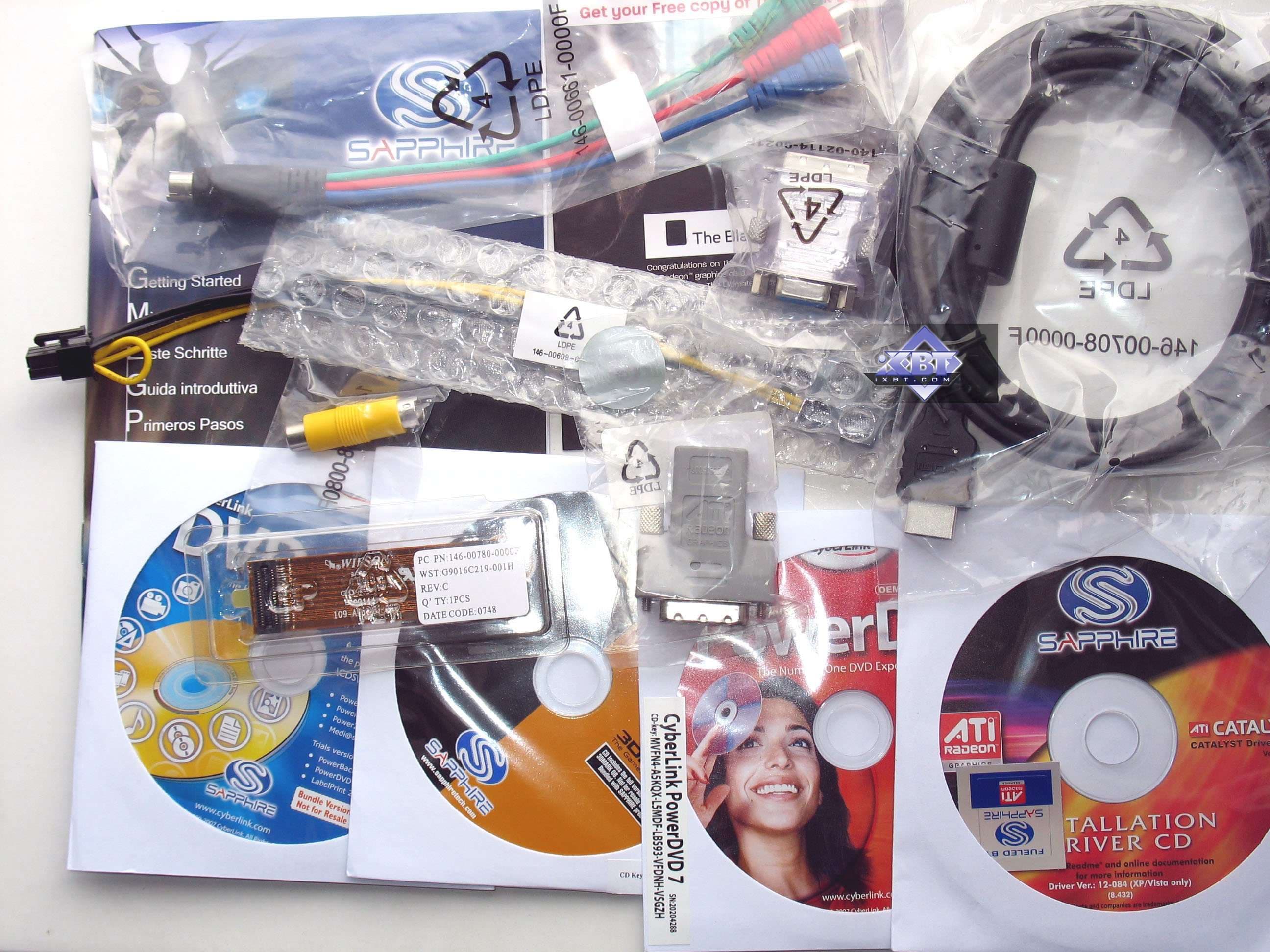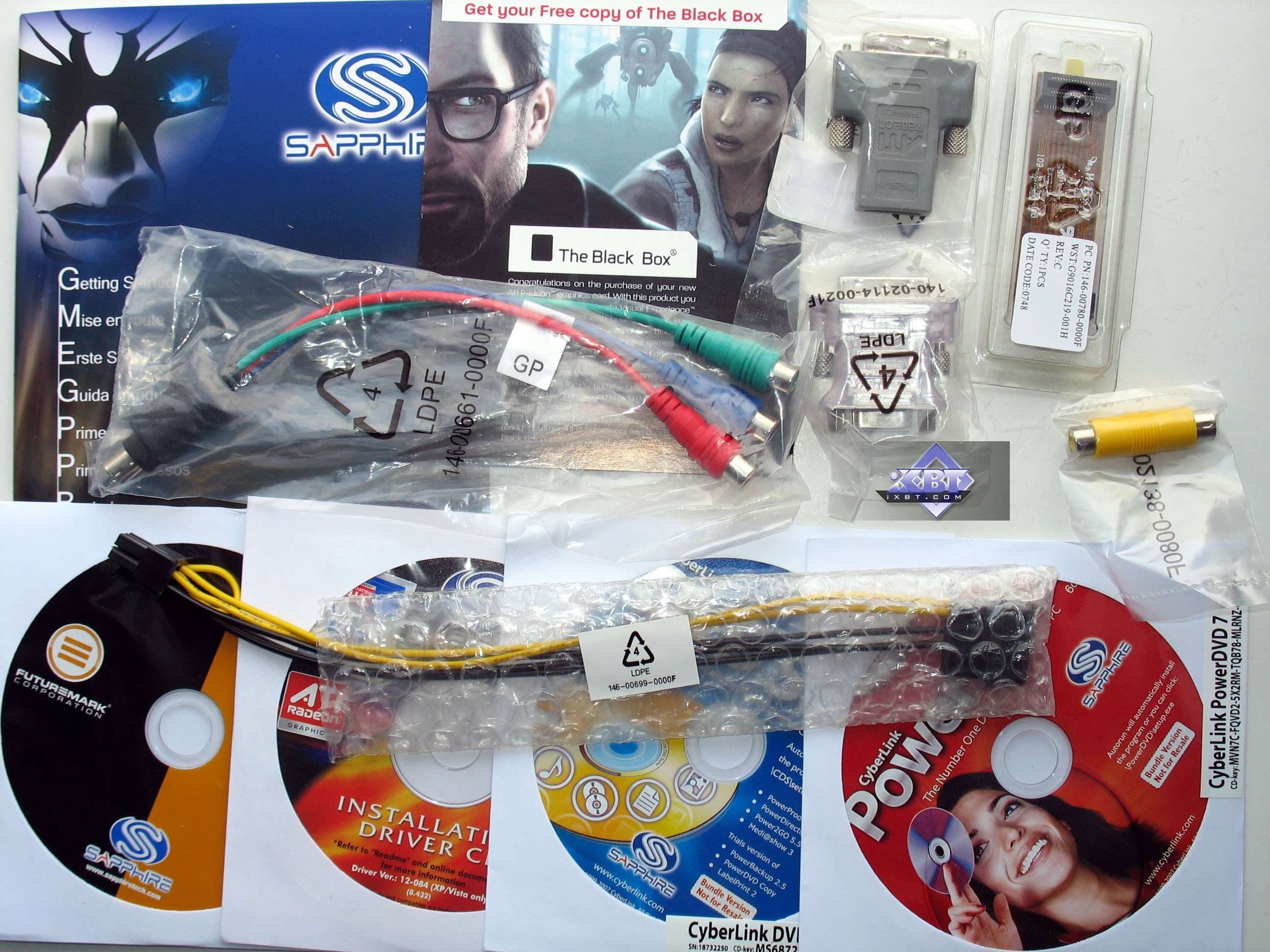 Базовый комплект поставки должен включать в себя: руководство пользователя, диск с драйверами и утилитами, переходник-адаптер DVI-to-VGA, DVI-to-HMDI адаптер, CrossFire-мост и адаптер компонентного вывода (TV-out), а также разветвитель внешнего питания. Ниже мы покажем, что предлагается к каждой карте дополнительно.