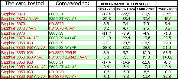 Тесты показали, что 3870-серия в целом проигрывает сопернику в лице 8800 GT, поэтому если вы найдете последний по цене меньше, чем у 3870, то вопросов даже быть не может — что покупать. Конечно 8800 GT. А вот если цены адекватны скоростям… Тут уже вопрос сложный.
