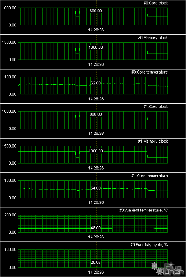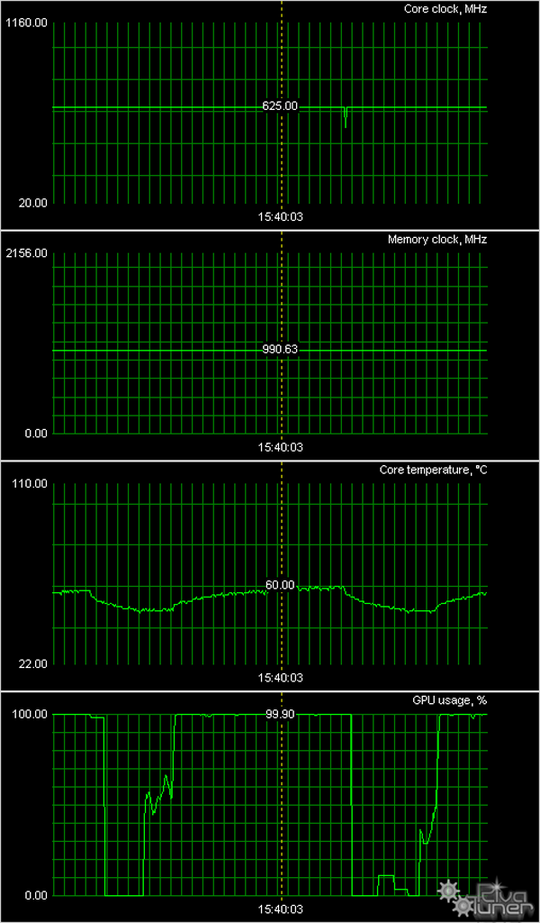 Для всех карт мы провели исследование температурного режима с помощью утилиты RivaTuner (автор А. Николайчук AKA Unwinder) и получили следующие результаты: