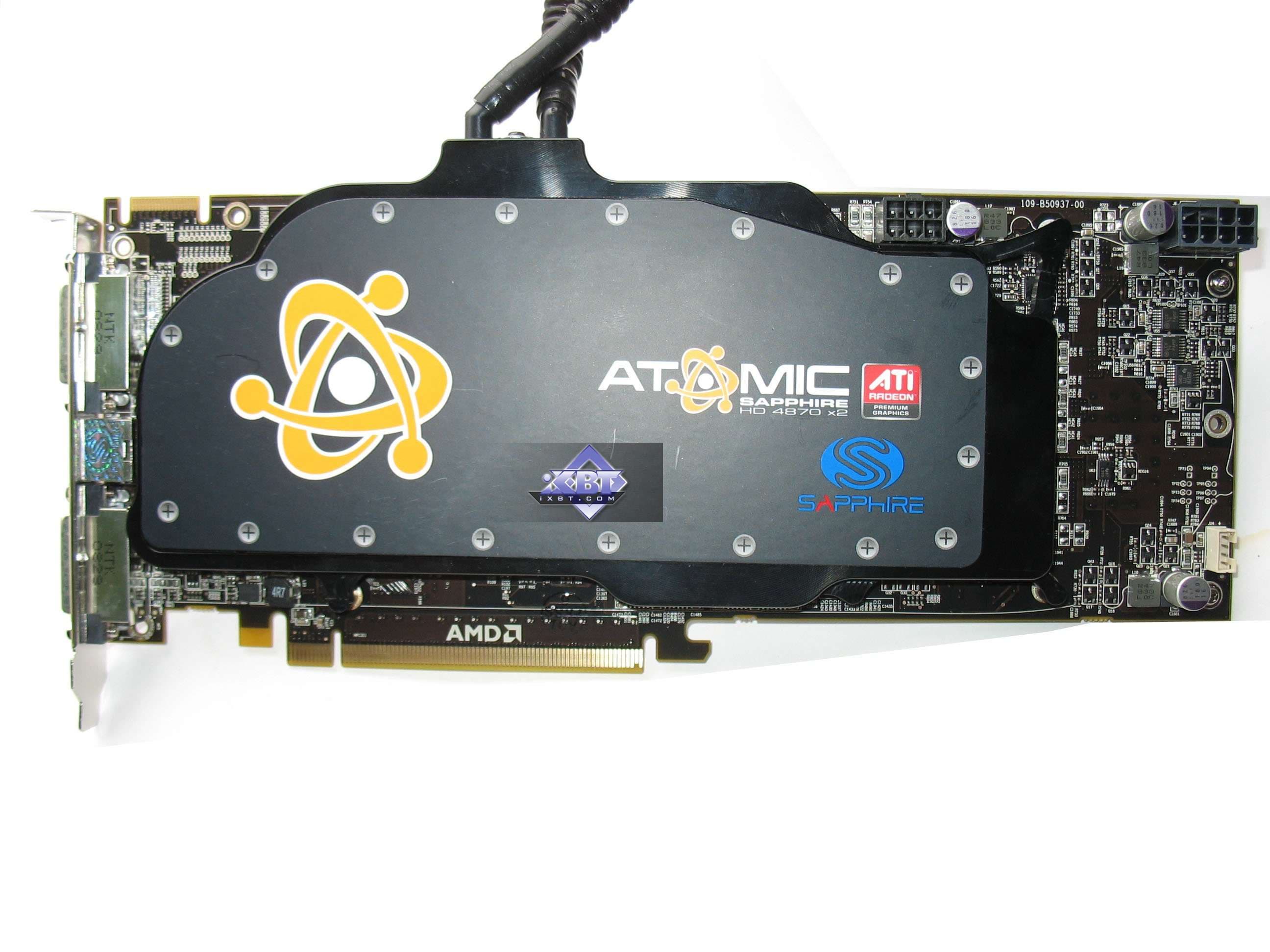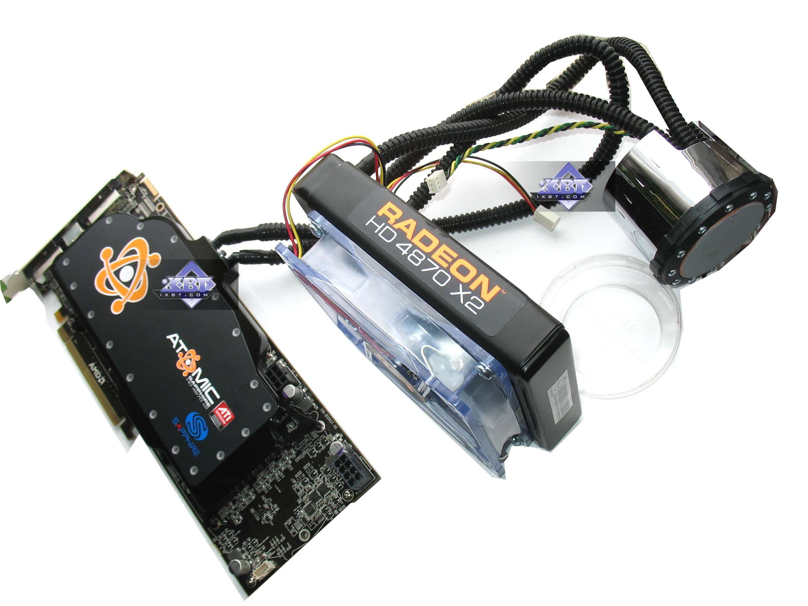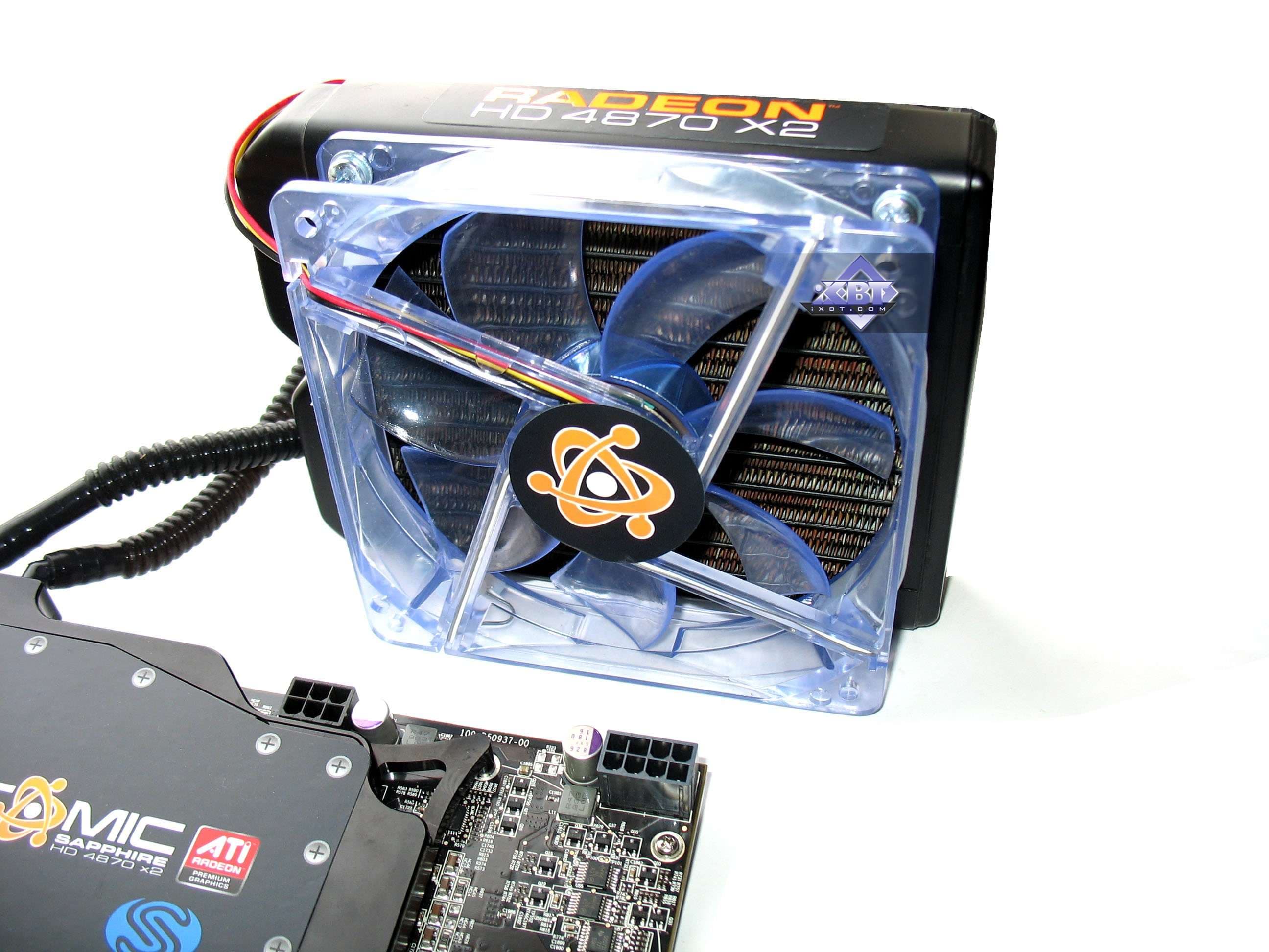 Sapphire ATOMIC RADEON 4870 X2 2x1024MB PCI-E — отличный продукт в плане производительности и эффективности охлаждения, но надо учитывать нюансы. Во-первых, такие чемоданы вряд ли кто-то повезет на наши прилавки, во-вторых, требуется приличная просторность внутри корпуса для монтажа всех элементов СО. В-третьих, надо иметь дополнительное гнездо питания на системной плате для подключения блока охлаждения. В-четвертых, всегда надо учитывать потенциальную опасность протечек. Все водяные СО рано или поздно текут. Уже многие пользователи сталкивались с этим, поскольку где постоянная вибрация, там постепенно расшатываются крепежи и возникают микрощели.