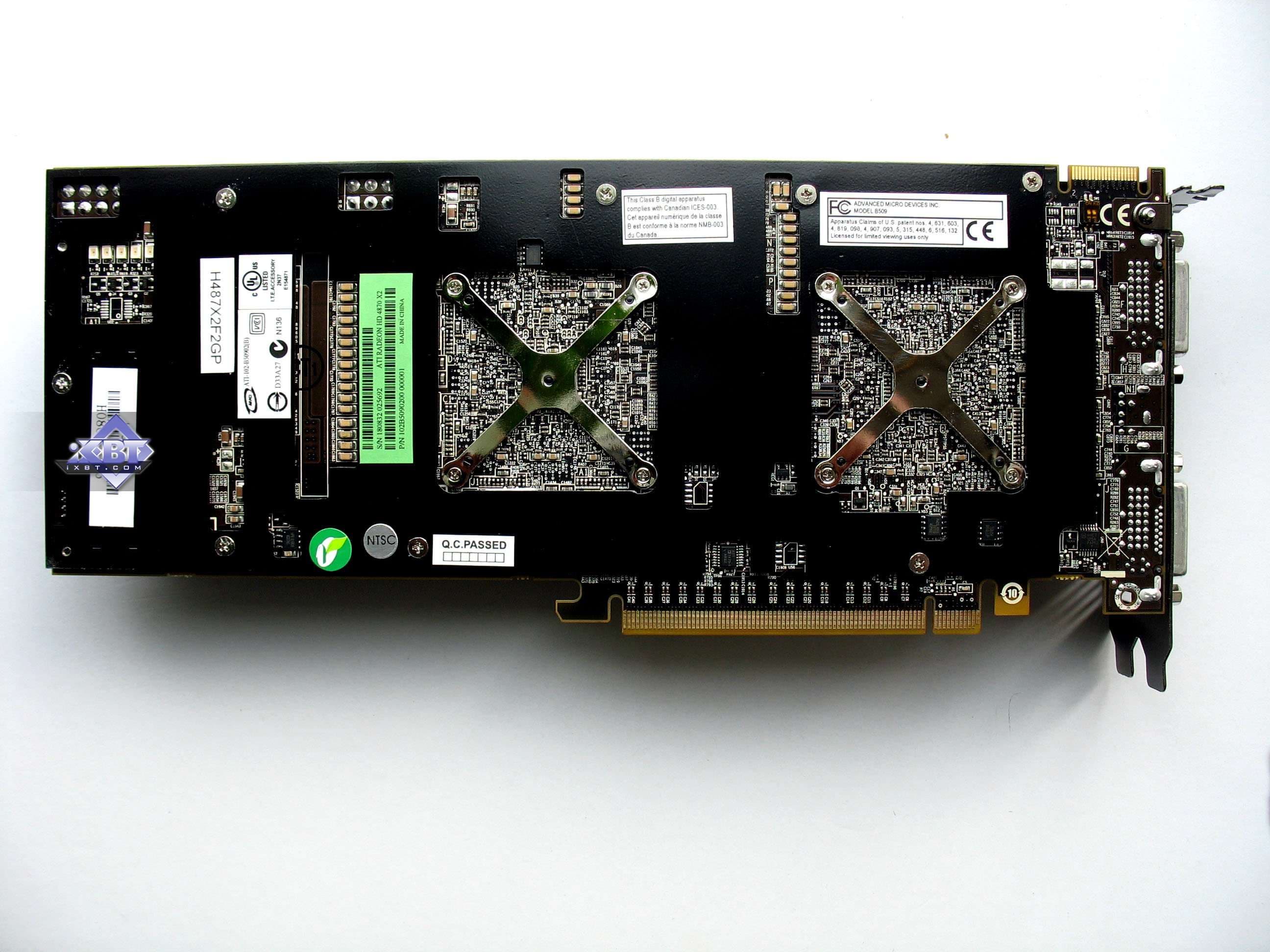 | Карта имеет 2x1024 МБ памяти GDDR5 SDRAM, размещенной в 16 микросхемах (по 8 на лицевой и оборотной сторонах PCB) Микросхемы памяти Hynix (GDDR5). Микросхемы рассчитаны на максимальную частоту работы в 1000 (4000) МГц. | ![]() |