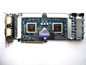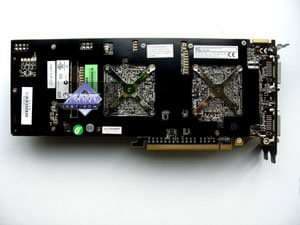 | Карта имеет 2x1024 МБ памяти GDDR3 SDRAM, размещенной в 16 микросхемах на лицевой стороне PCB Микросхемы памяти Samsung (GDDR3). Микросхемы рассчитаны на максимальную частоту работы в 1200 (2400) МГц. | ![]() |