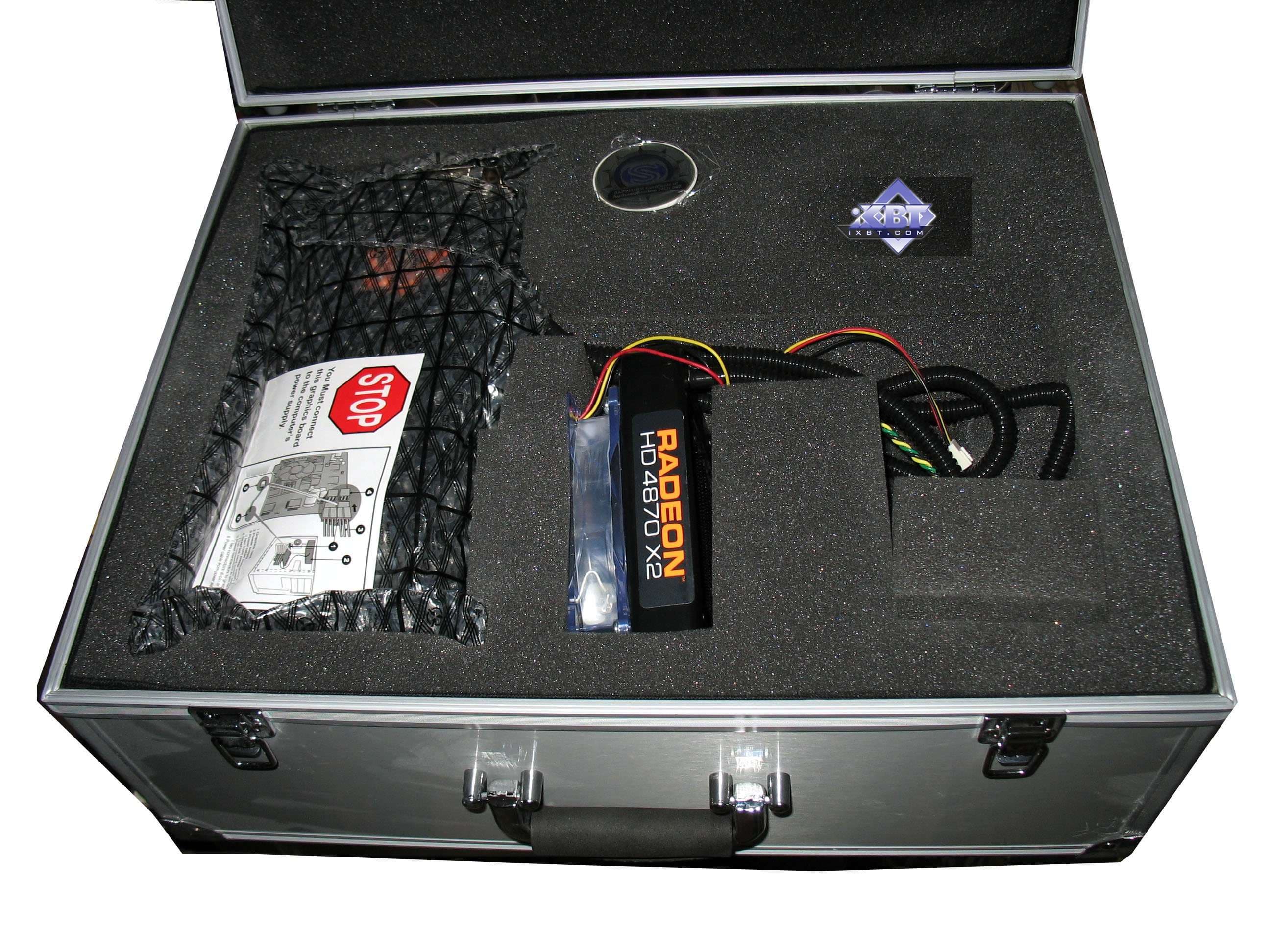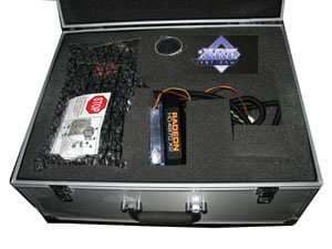 Начнем с монстра атомной энергетики Sapphire ATOMIC RADEON 4870 X2 2x1024MB PCI-E (кстати, внутри поролона в чемодане не нашли портативную атомную электростанцию — почувствовали себя обманутыми. Ведь название карты явно говорит о том, что таковая должна прилагаться… Хотя впоследствии мы провели иную логическую нить: Компания Sapphire — представитель оной в России Константин Мартыненко — он же Kenguru — он же бывший владелец веб-сайта Reactor Critical, посвященного трехмерной графике, — а где реактор, там и атомы и всякие Atomic. Так что было очень забавно видеть Kenguru с чемоданом, на котором в названии явно прослеживалась его давняя любовь к реакторам и прочей энергетике).