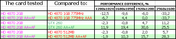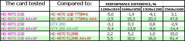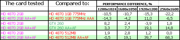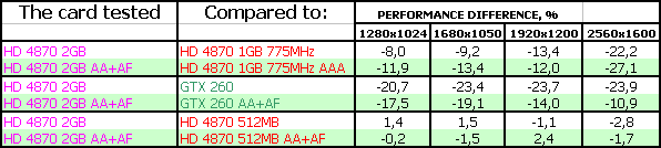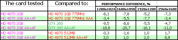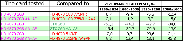 В вышеприведенных таблицах сравнений нет 4850 по причине, что карта с рядовыми частотами и объемом памяти, потому ее производительность от аналогичной референс-карты ничем не отличается.