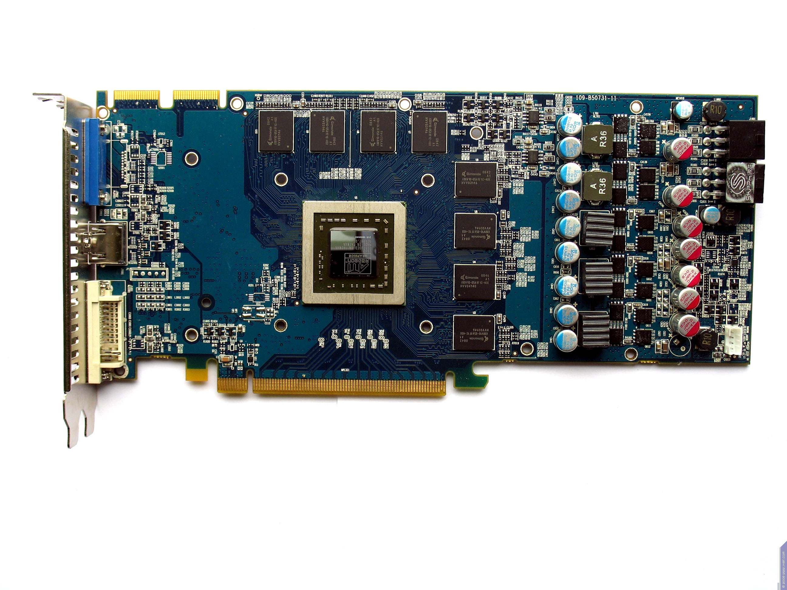 | Карта имеет 2048 МБ памяти GDDR5 SDRAM, размещенной в 16 микросхемах (по 8 на каждой стороне PCB) Микросхемы памяти Qimonda (GDDR5). Микросхемы расчитаны на максимальную частоту работы в 1000 (4000) МГц. | ![]() |