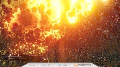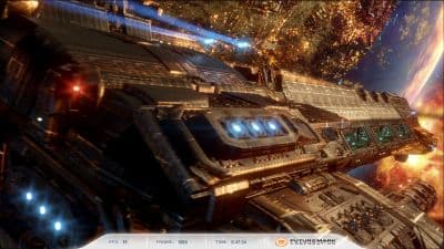 Оба игровых теста используют один и тот же графический движок и большинство используемых возможностей, таких как эффекты постобработки. Однако между тестами есть и некоторые отличия, если в первом тесте отрисовывается большая indoor сцена с многочисленными сложными статическими и динамическими объектами, физическими расчётами на видеочипе, симуляцией тканей и динамическими волнами, вместе с множеством источников света, то во второй сцене мы видим открытую 3D сцену в космосе, с огромным количеством сравнительно простых объектов и более сложной постобработкой.