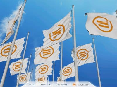 Этот тест отрисовывает 12 развевающихся флагов, анимация которых рассчитывается полностью на GPU. Вычисления делаются в вершинных и геометрических шейдерах, а результаты выводятся при помощи stream out. Каждый флаг смоделирован как сетка связанных вершин, каждая из которых соединена с соседними. На ткань флагов влияют силы гравитации и ветра.