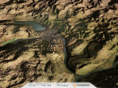 Среднее число вызовов draw calls на кадр в этот раз чуть больше 800, а максимальное так же под 2000 вызовов. Сцена очень хорошо оптимизирована, основной вклад в это сделали instancing и true impostors. Среднее количество полигонов, рассчитываемых за рендеринг одного кадра, получилось равным около 400 тысяч треугольников, максимальное чуть более одного миллиона. Именно из-за хорошей оптимизации и получилось такое малое количество геометрии, в сцене много попиксельного освещения и сложного parallax mapping. В выбранном разрешении используется снова менее 400 мегабайт видеопамяти, требования к её объёму остаются теми же (для стандартного разрешения пресета Extreme значение вырастет).