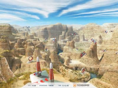 Физический тест CPU очень сильно нагружает процессор сложными физическими расчётами, которые появятся в будущих играх. Сцена снова основана на самолётах, но задачи и цели у них другие. Самолёты выпускают дым, взаимодействующий с различными объектами, вроде ворот, гибких колец и земли.