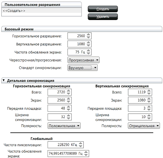 В новых драйверах Crimson Edition появилась поддержка добавления пользовательских разрешений, что позволяет создать свой собственный режим, изменяя тайминги, частоту обновления и т.д. Эта возможность доступна в дополнительных настройках Radeon Settings, вызываемых в отдельном окне.