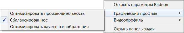 В остальном, кроме упрощения интерфейса и ускорения установки, процесс мало чем отличается от предыдущей версии. А вот запуск самих настроек Radeon Settings после их установки происходит намного быстрее, чем это было в случае неповоротливого CCC. Для запуска Radeon Settings достаточно выбрать соответствующий пункт в контекстном меню рабочего стола Windows или двойного щелчка мышью на специальной красной иконке в системном трее. Также в этом меню можно быстро выбрать профиль для игр и видеоданных.