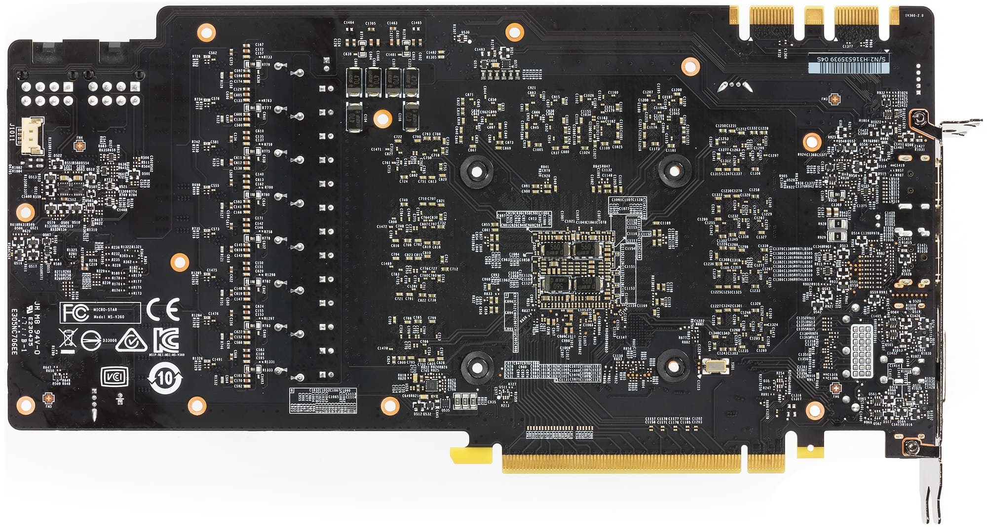 Традиционно продукты компании MSI полностью спроектированы своими инженерами. Это относится и к данному ускорителю. Сходство с референс-картой есть только в расположении микросхем памяти (что логично) и в наборе видеовыходов.