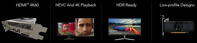 | Поддержка мониторов | Интегрированная поддержка до шести мониторов, подключенных по интерфейсам DVI, HDMI 2.0b и DisplayPort 1.3/1.4 HDR Ready |