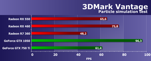 Несмотря на теоретически меньшее количество геометрических исполнительных блоков и отставание по геометрической производительности у почти всех чипов AMD, по сравнению с конкурирующими решениями от Nvidia, платы Radeon в этом тесте работают очень быстро, обгоняя все видеокарты GeForce, представленные в сравнении, даже более дорогие. Так, рассматриваемая сегодня плата Radeon RX 550 с запасом обогнала в этом тесте и GeForce GTX 750 Ti и даже GTX 1050, которые близки по скорости — явно же с этим тестом что-то не так. Feature Test 5: GPU Particles