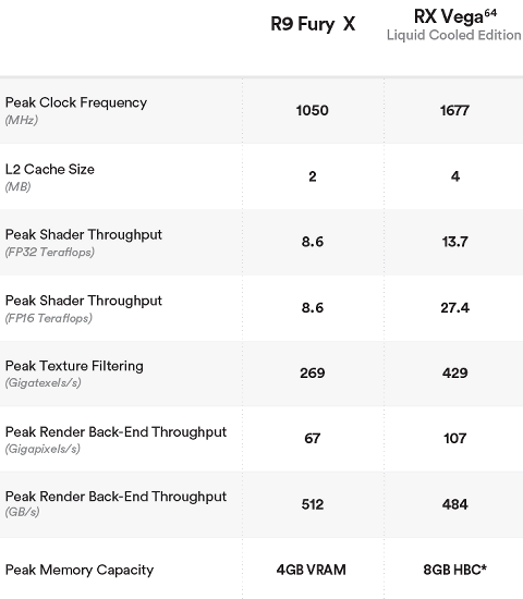 | RX Vega 64 8 ГБ — 49500 руб. (на 08.09.17) | R9 Fury X 4 ГБ — 28 700 (на 03.08.17) |